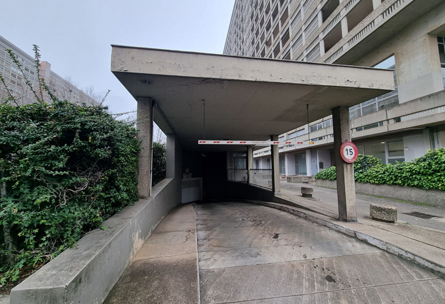 Place de parking au sous-sol d'une résidence sécurisée.