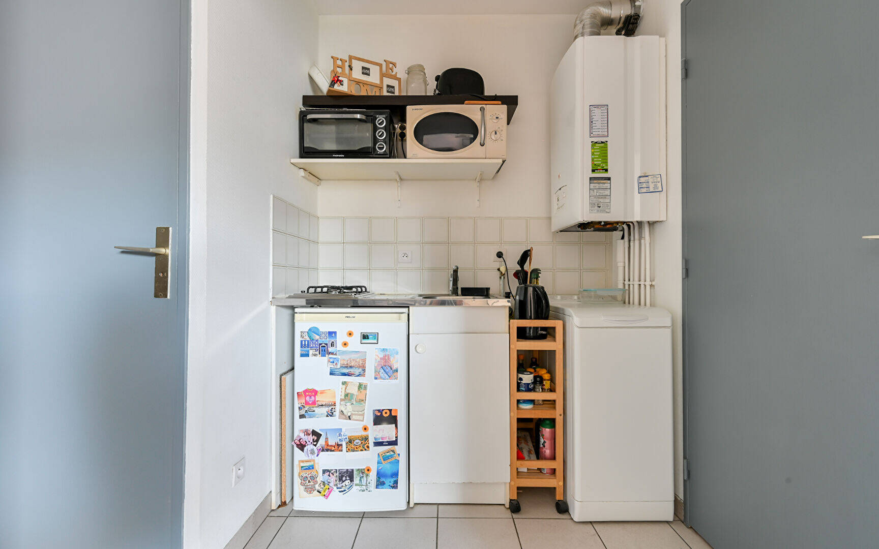 Il se compose d'une entrée avec espace cuisine, d'une pièce principale donnant au calme sur la cour intérieure, d'un dressing et d'une salle de bains avec wc.