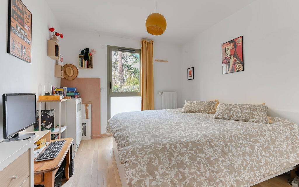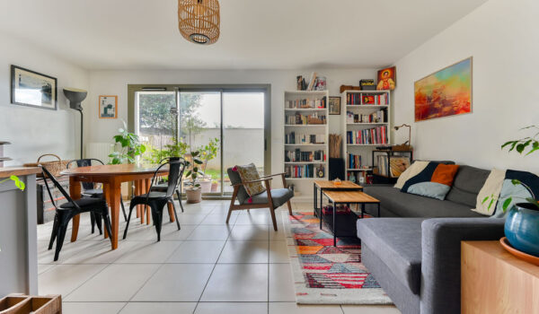 Il se compose d'une grande pièce de vie bénéficiant d'une large baie vitrée donnant accès à la terrasse et au jardin, d'une cuisine entièrement aménagée et équipée ouverte sur le séjour, d'un coin nuit avec ses deux chambres, une salle de bains, un wc indépendant et des rangements.