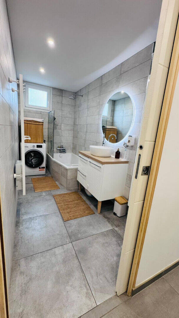 Un WC séparé et une salle de bains avec un coin buanderie.