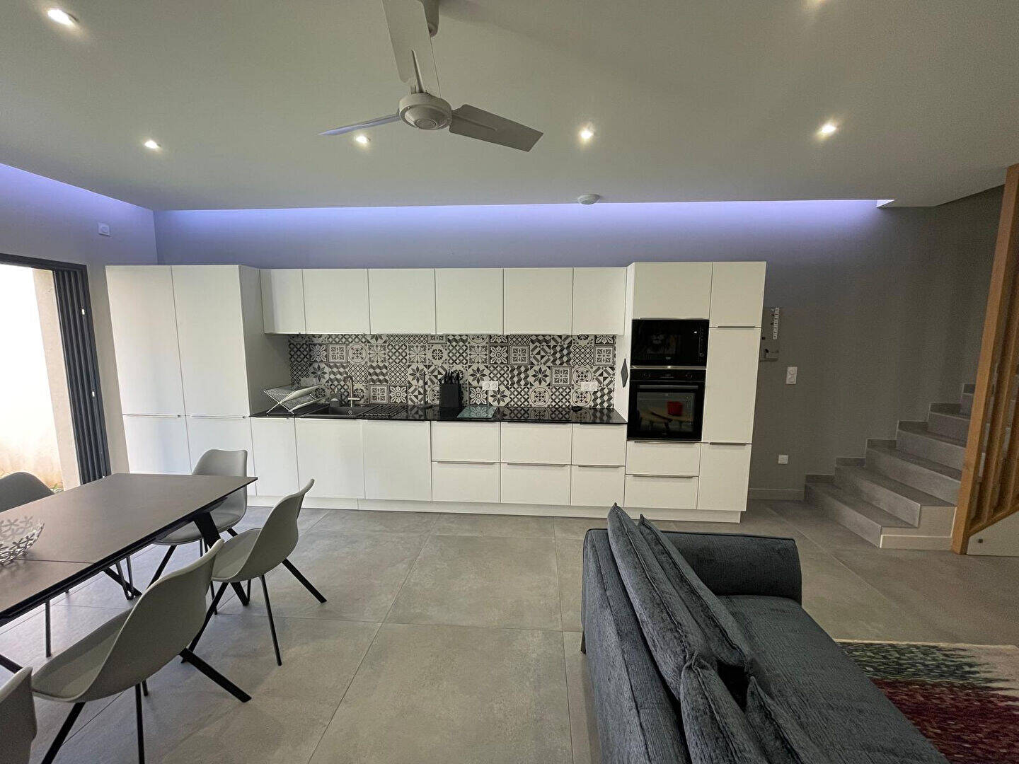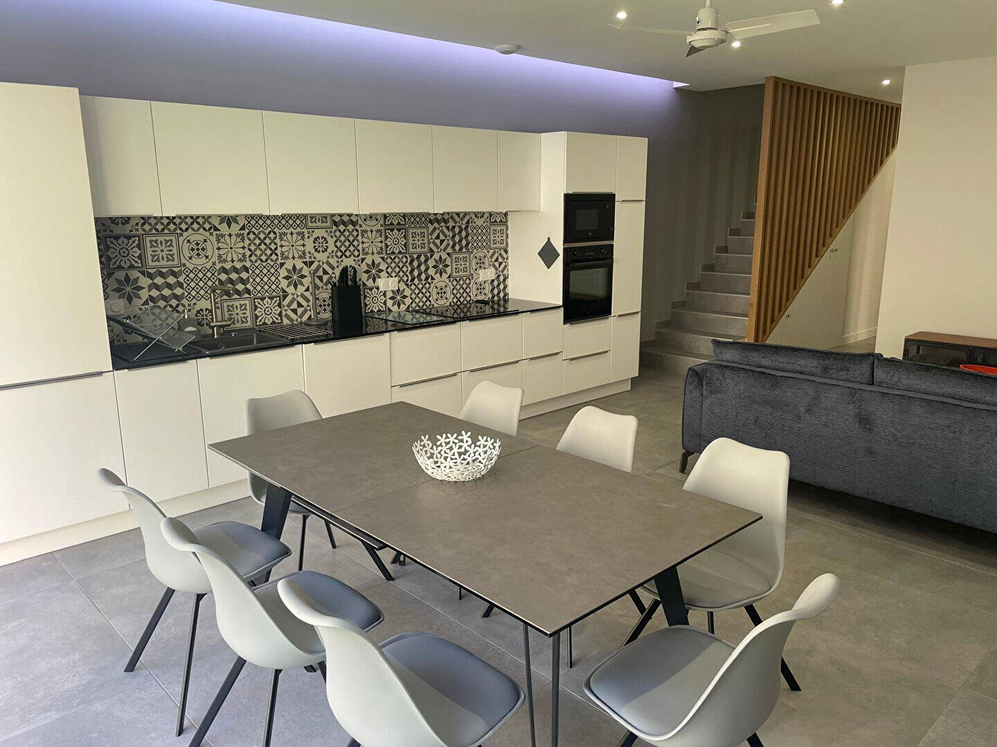 Au rez-de-chaussée: un grand espace réunissant la cuisine ouverte, le séjour et la salle à manger. Cette pièce à vivre permet l'accès à une terrasse aménagée de 27m² mais aussi à une cave en sous-sol de 37m² pouvant être aménagée selon les projets. Nous retrouvons à ce niveau, deux grandes chambres avec placards intégrés, une salle d'eau et un WC.